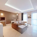 Die Unterkunft bietet einen Balkon und eine Terrasse und moderne Annehmlichkeiten wie eine Klimaanlage sowie einen Flachbildfernseher mit Satellitenkanälen. Das Apartment lädt Gäste in 1 Schlafzimmer ein. Diese Unterkunft verfügen über 1 Badezimmer.